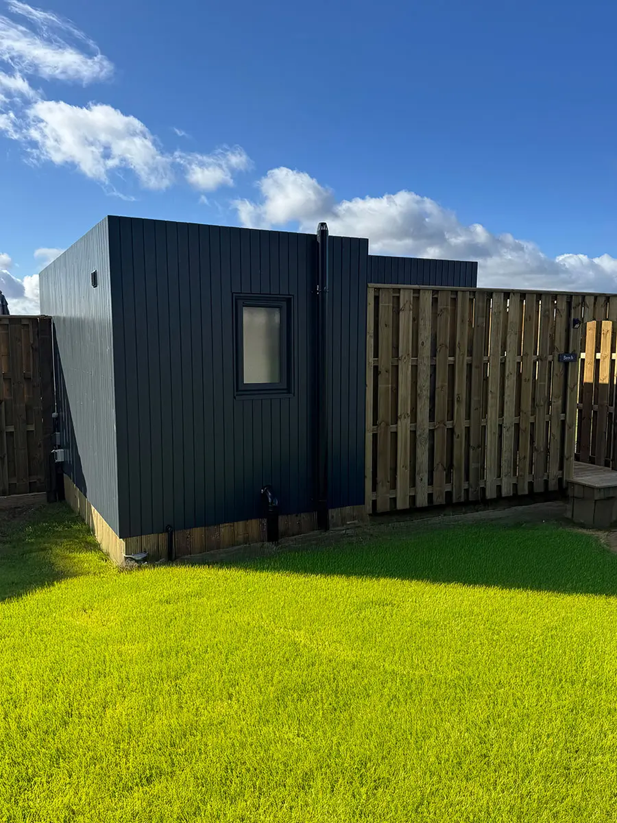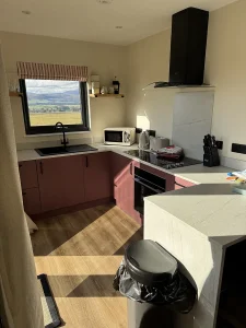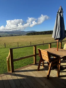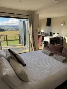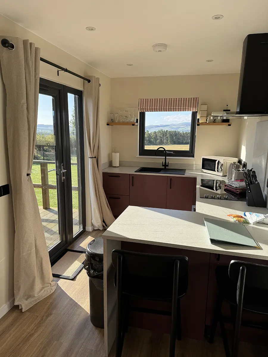 Beech is a ground floor open plan converted shipping container, perfect for a relaxing stay. The hot tub on the private decking area has beautiful views of the Cheviot Hills. Follow us @fentonhillfarmcottages.