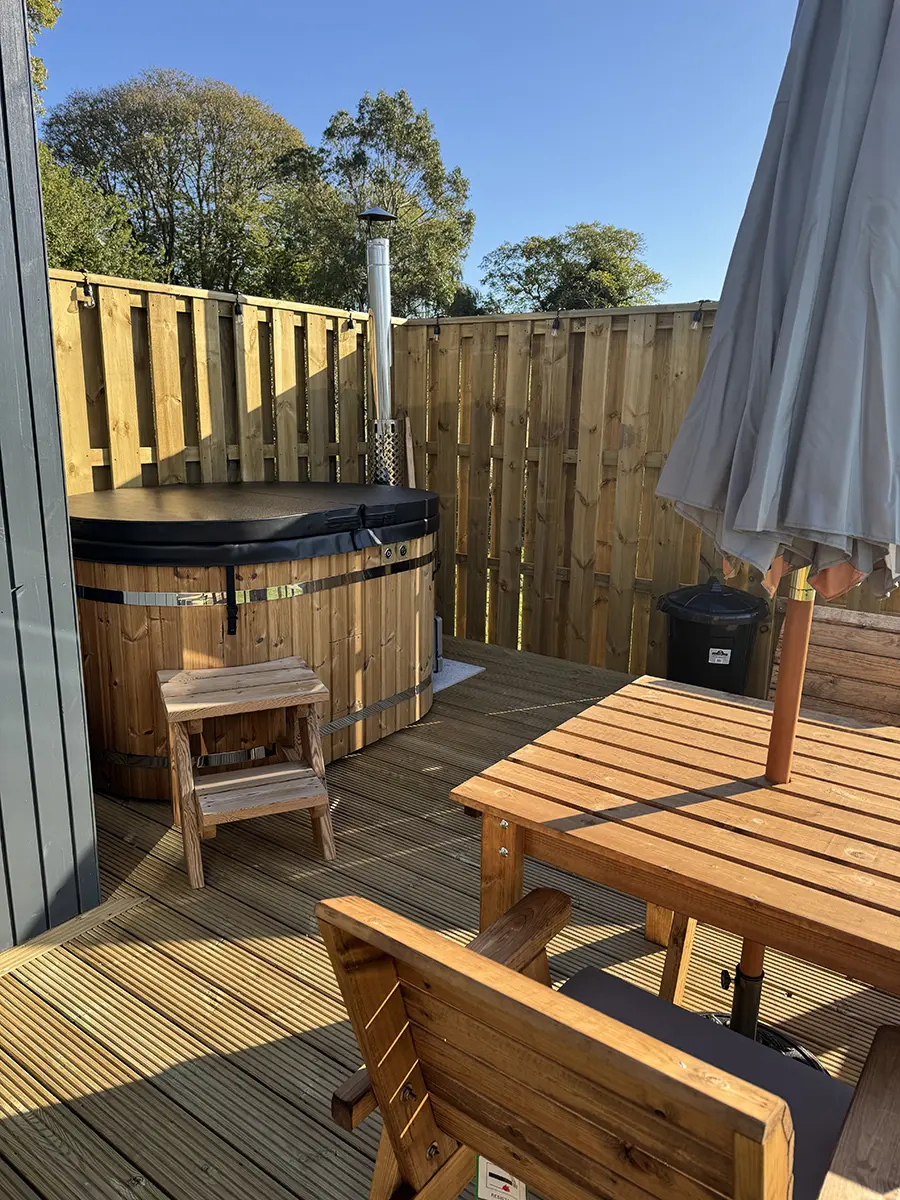 Please note – the booking price includes use of the hot tub for one evening only. This is because the water needs to be drained and the hot tub cleaned between every use. If you wish to use the hot tub for more than one evening we can clean and refill for a cost of £40 per use.